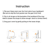 1, Flip your Hoop cover over the front side of your backboard (Be sure to slip the front pocket over the goal (rim) first).